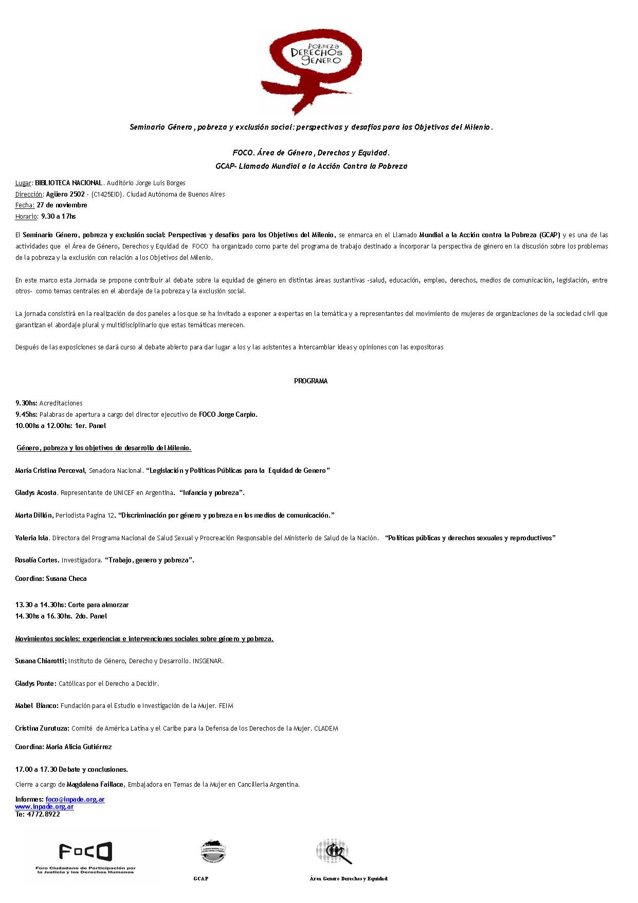 [Gcap-mujeres] Seminario Género, Pobreza y Exclusión social