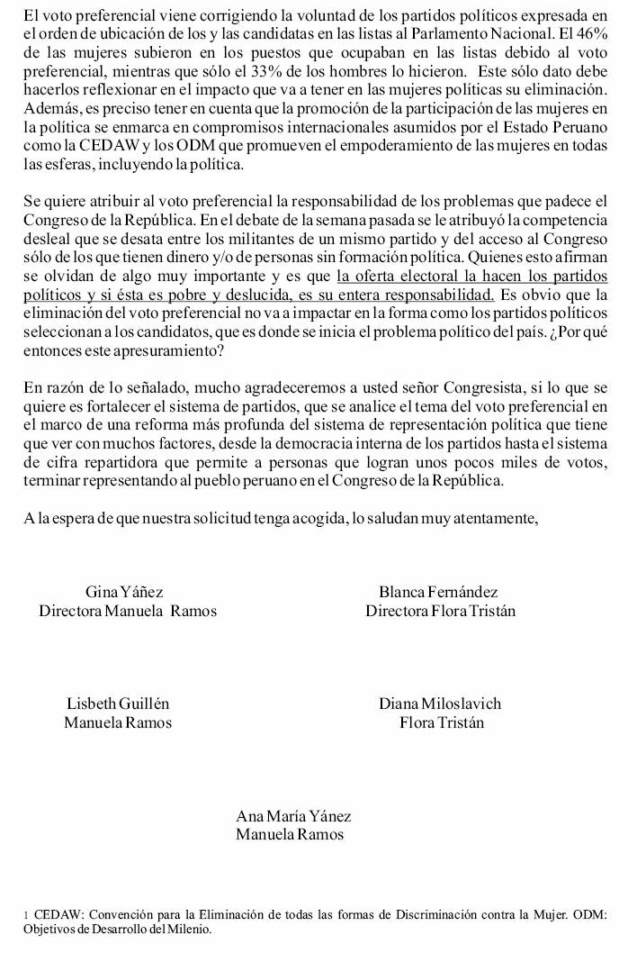 [Gcap-mujeres] Perú, se pone en juego la participación política de las mujeres peruanas