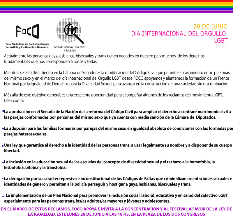 [Gcap-mujeres] Día Internacional del orgullo LGBT - Por la igualdad de derechos para la Diversidad sexual