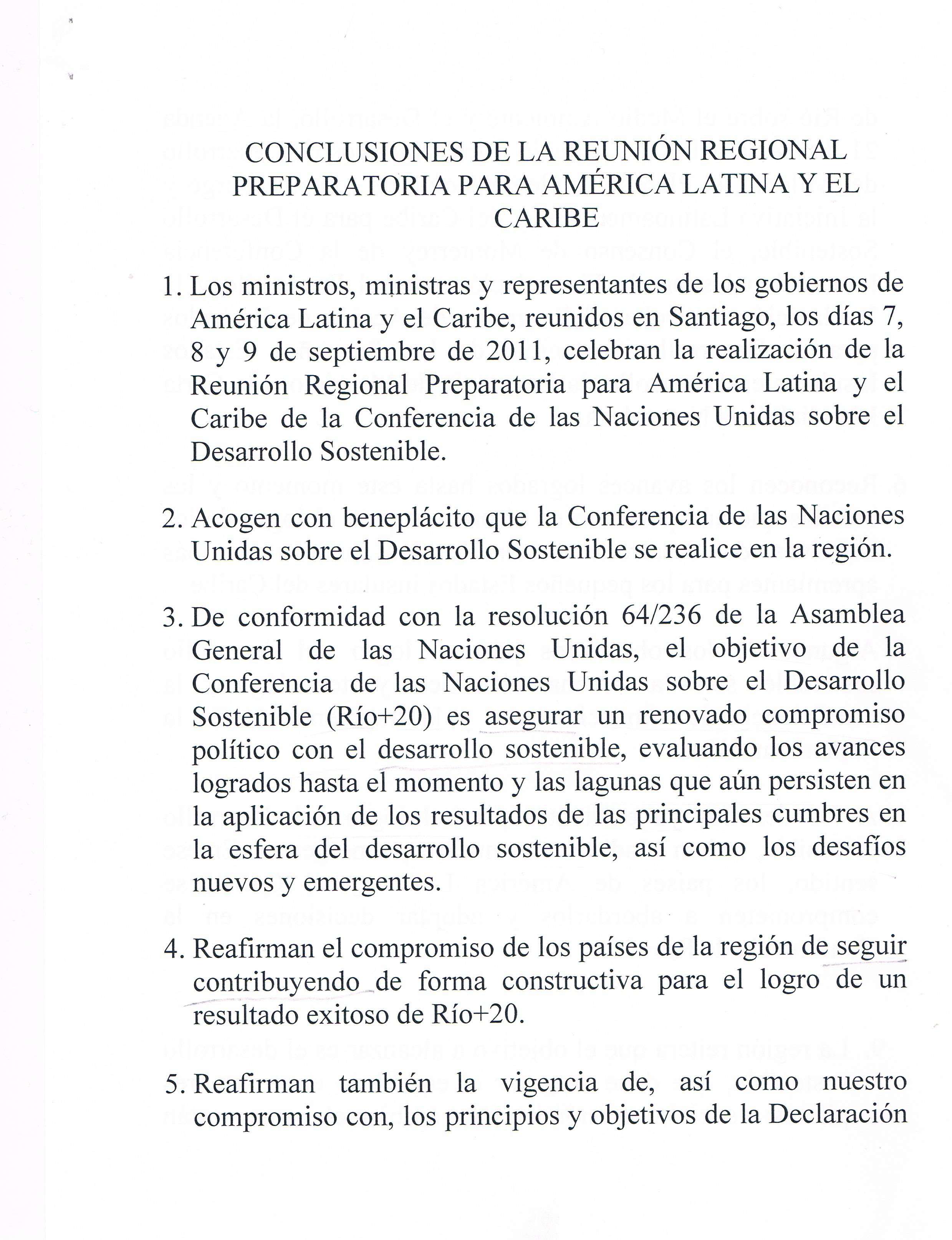 Preparatoria Rio+20 Santiago de Chile 6 al9 Septiembre 2011